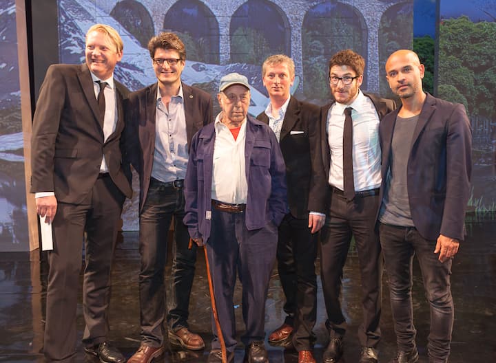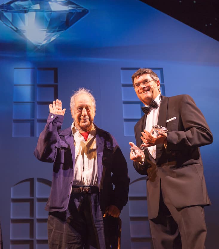 Robert Frank, Fotograf, erhält von Guido Albisetti, Stiftungsratspräsident Fondation Reinhardt von Graffenried, den Lifetime Award
