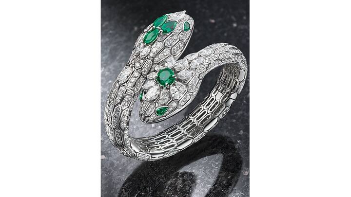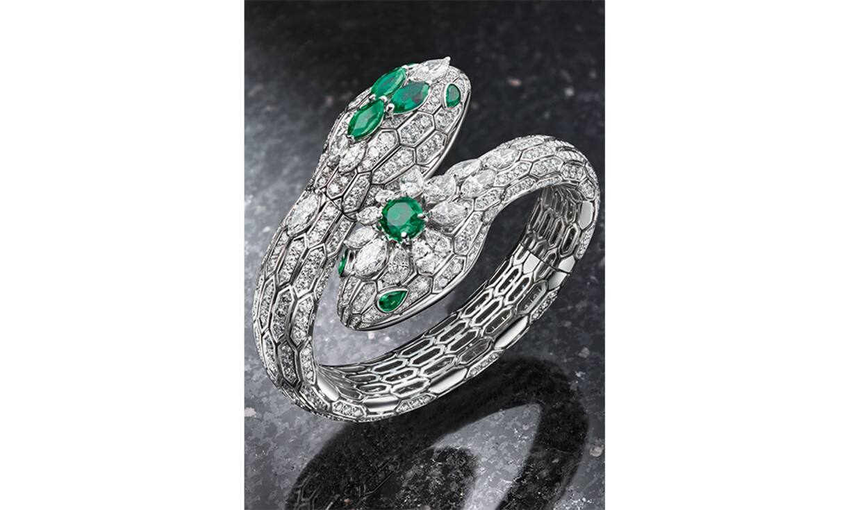 Die Schlange Serpenti ist eine Designikone von Bulgari. Edelstvariationen wie diese entstehen als Unikate im Atelier Haute Joaillerie in Rom.