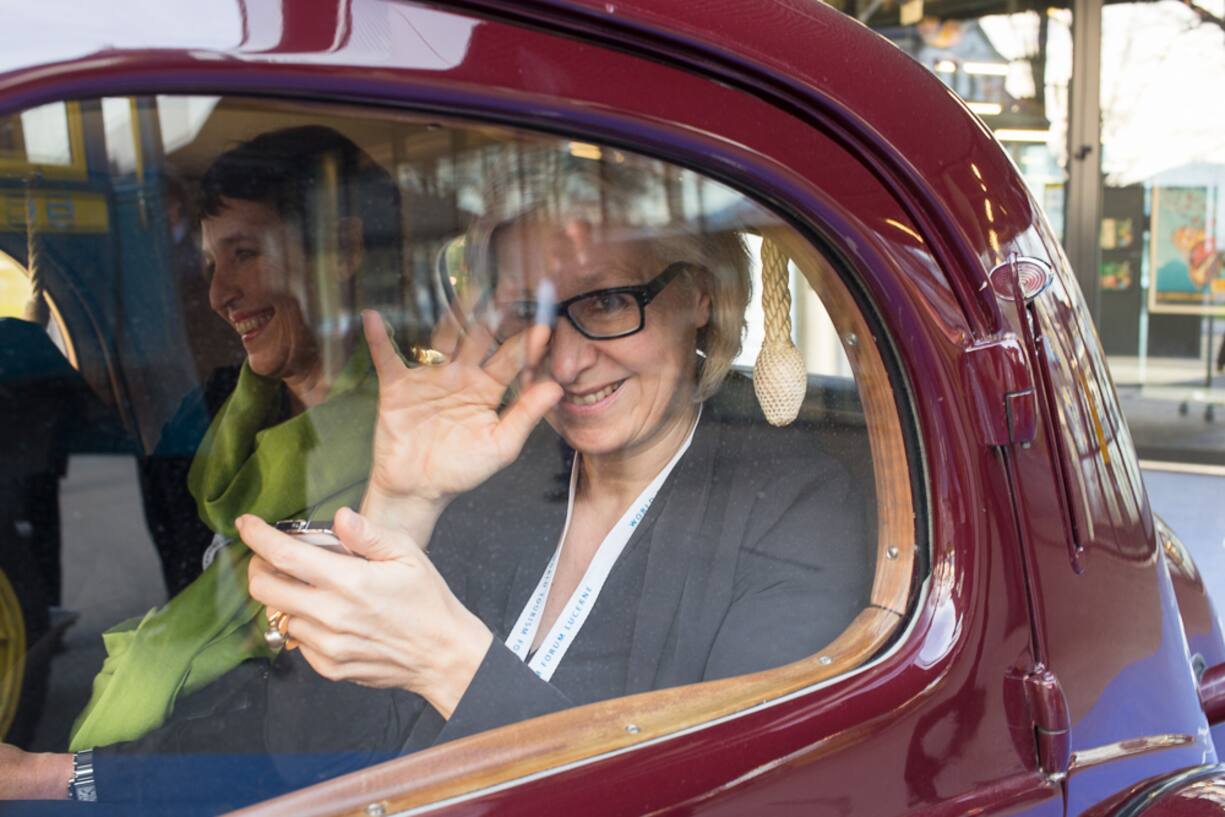 Jeannine Pilloud, SBB, für einmal im Fonds eines Oldtimers unterwegs