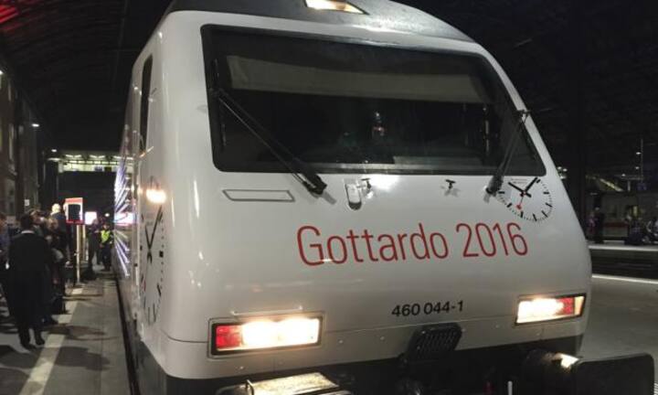 Bahnhofsuhrmacher Mondaine zeigt nicht nur eine neue Uhr, sondern zur Eröffnung des Gotthardtunnels auch eine Lok im Markenkleid.RMS