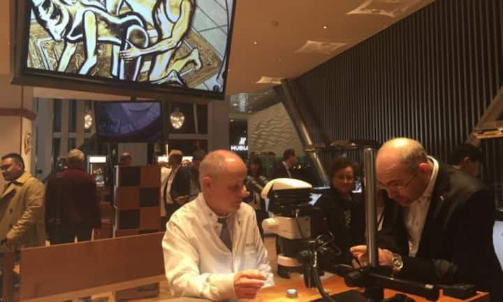 Dazu gehören auch die Uhrmacher selbst, die ihr Handwerk der Fachwelt präsentieren können, hier bei Blancpain.RMS