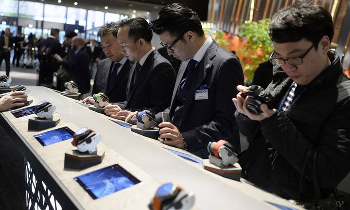 Doch auch die Baselworld ist im digitalen Zeitalter angekommen: Neben Uhren und Schmuck wird dem technischen Fortschritt in Form von Virtual-Reality-Brillen (Tag-Heuer-Stand) Platz eingeräumt.RMS