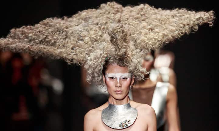 Neben den Promis ziehen auch die internationalen Models viel Aufmerksamkeit auf sich: Sie liefen an den Mercedes-Benz Fashion Days dieses Jahr in diversen Weltstädten - und das noch etwas origineller: Das Make-up sitzt, die Haare sind gestylt – ein Model während der L'Oreal Paris Show in Peking, China am 1. November 2013.