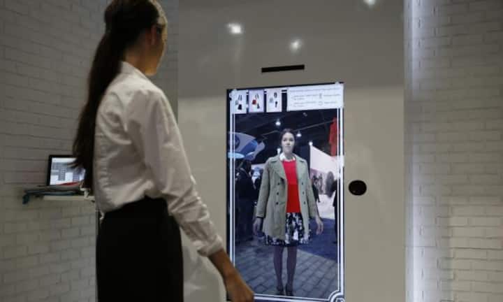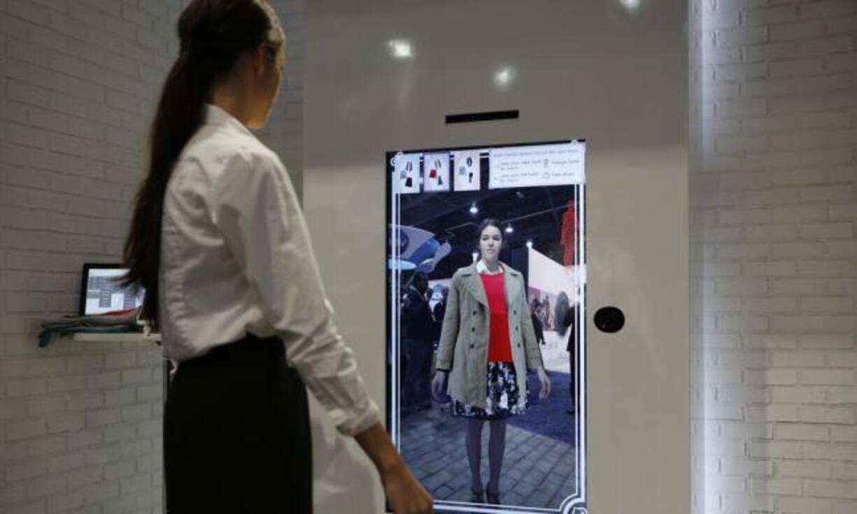 Virtueller Spiegel Der japanische Technologiekonzern Toshiba verwandelt mit seiner «Virtual Fitting Solution» das anprobieren von Kleidern zum Kinderspiel.