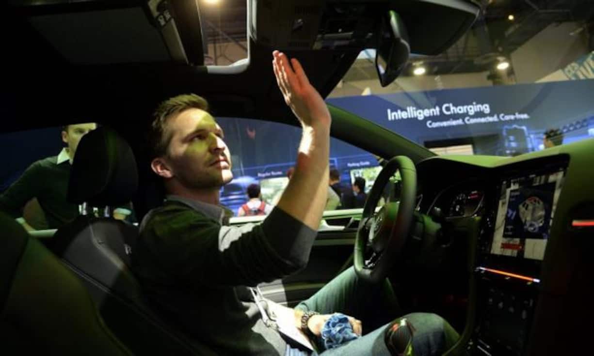 Schlaue Autos Im VW Golf e-car demonstriert der deutsche Autobauer die Gestensteuerung. So kann mit einer einfachen Handbewegung das Dach geöffnet werden.