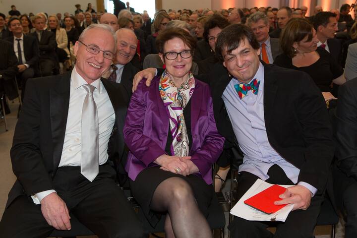 Ernt Fehr, Preisträger; Helga Fehr-Duda; Dan Ariely, Duke University Laudator