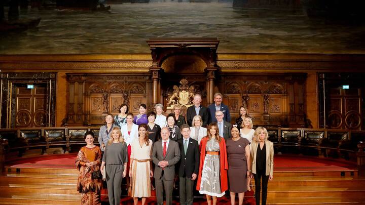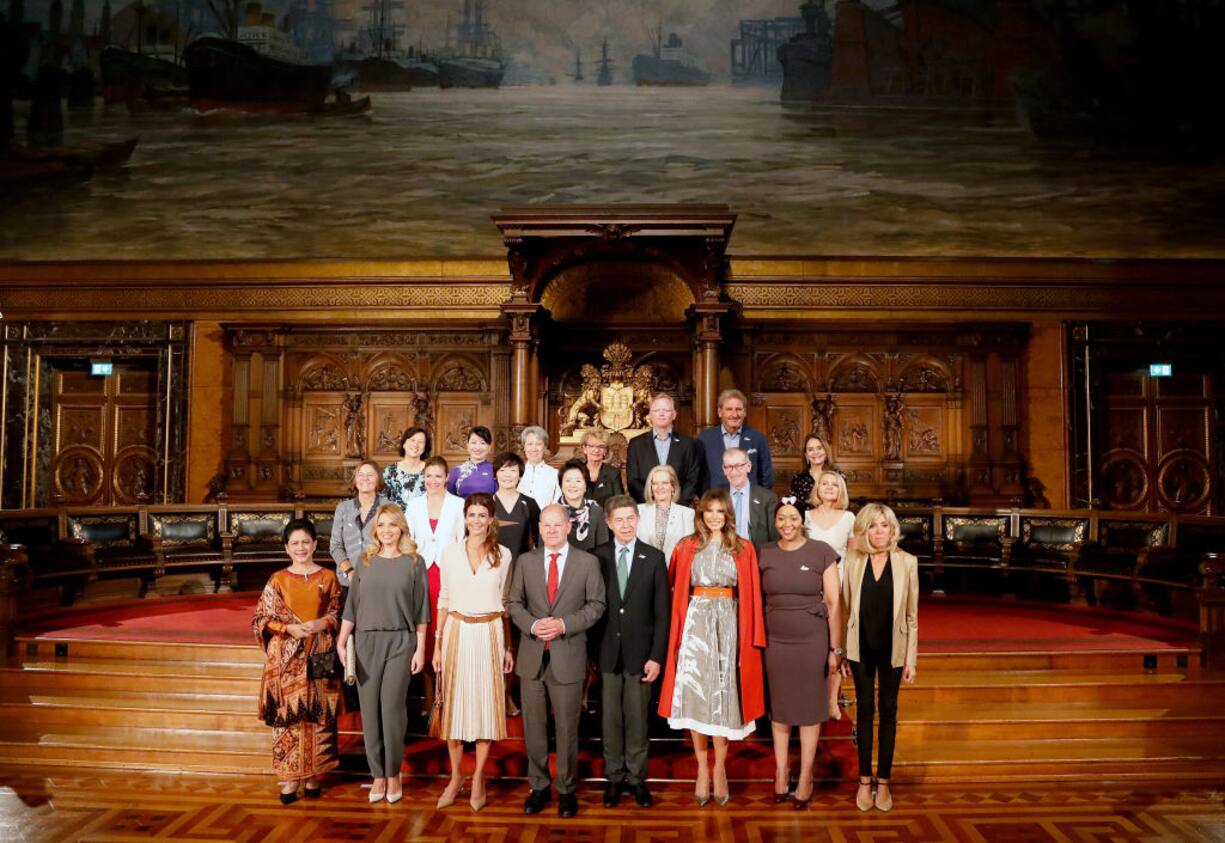 Olaf Scholz führte die Partner der Staats- und Regierungschefs des G20-Gipfels im historischen Hamburger Rathauses herum.