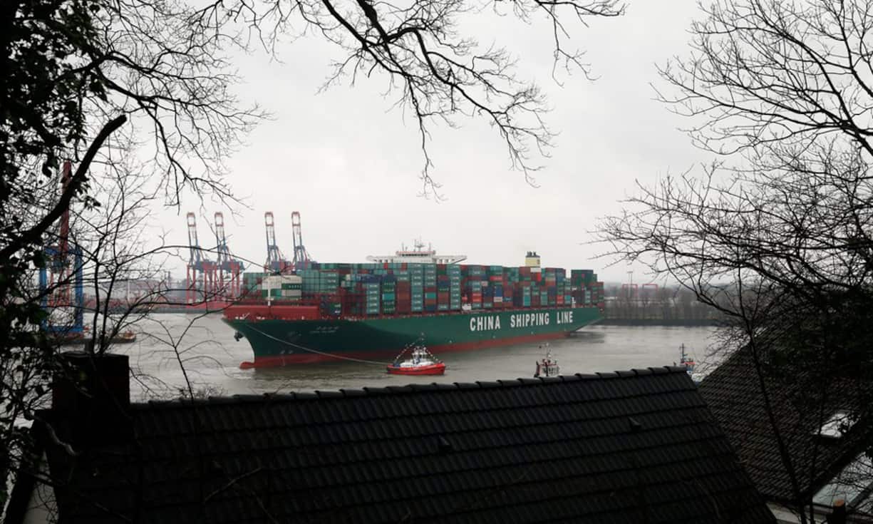 19.100 Standardcontainer finden in ihr Platz: Nach der Jungfernfahrt nach Hamburg macht sich die «CSCL Globe» nun wieder auf den Rückweg in Richtung ihrer Heimat China.