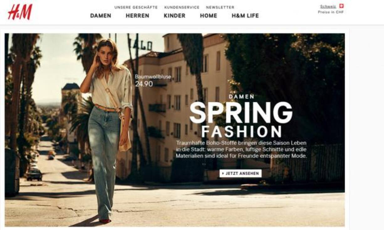 Anders bei H&M: Der schwedische Riese hat zwar einen Webauftritt für die Schweiz, auf dem die Preise auch in Franken ausgezeichnet sind. Bestellen ist online aber nicht möglich.