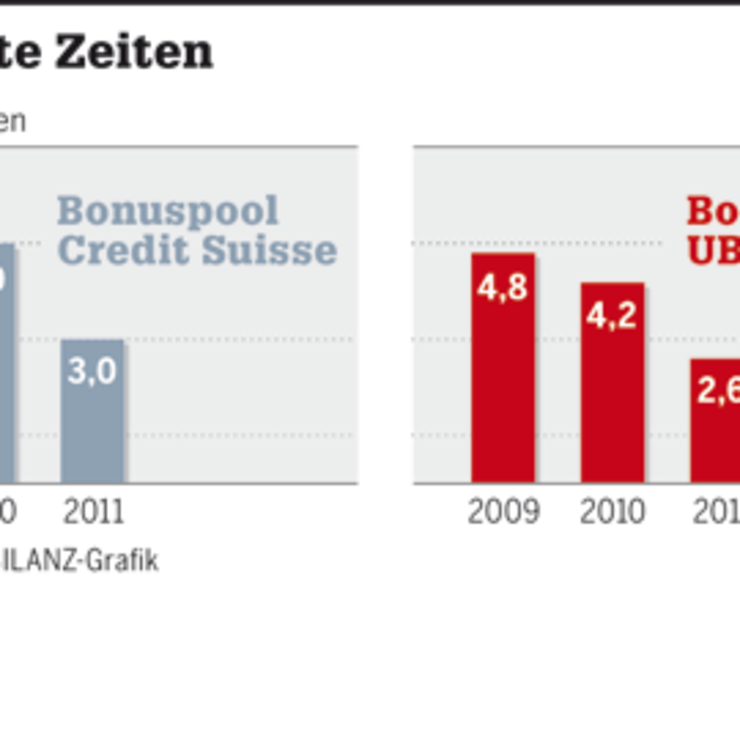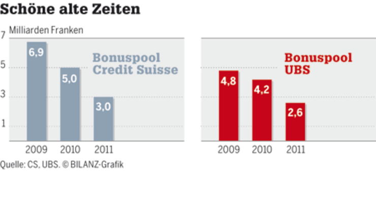 Die Boni bei den Banken sinken weiter. Besonders stark bei UBS und Credit Suisse.